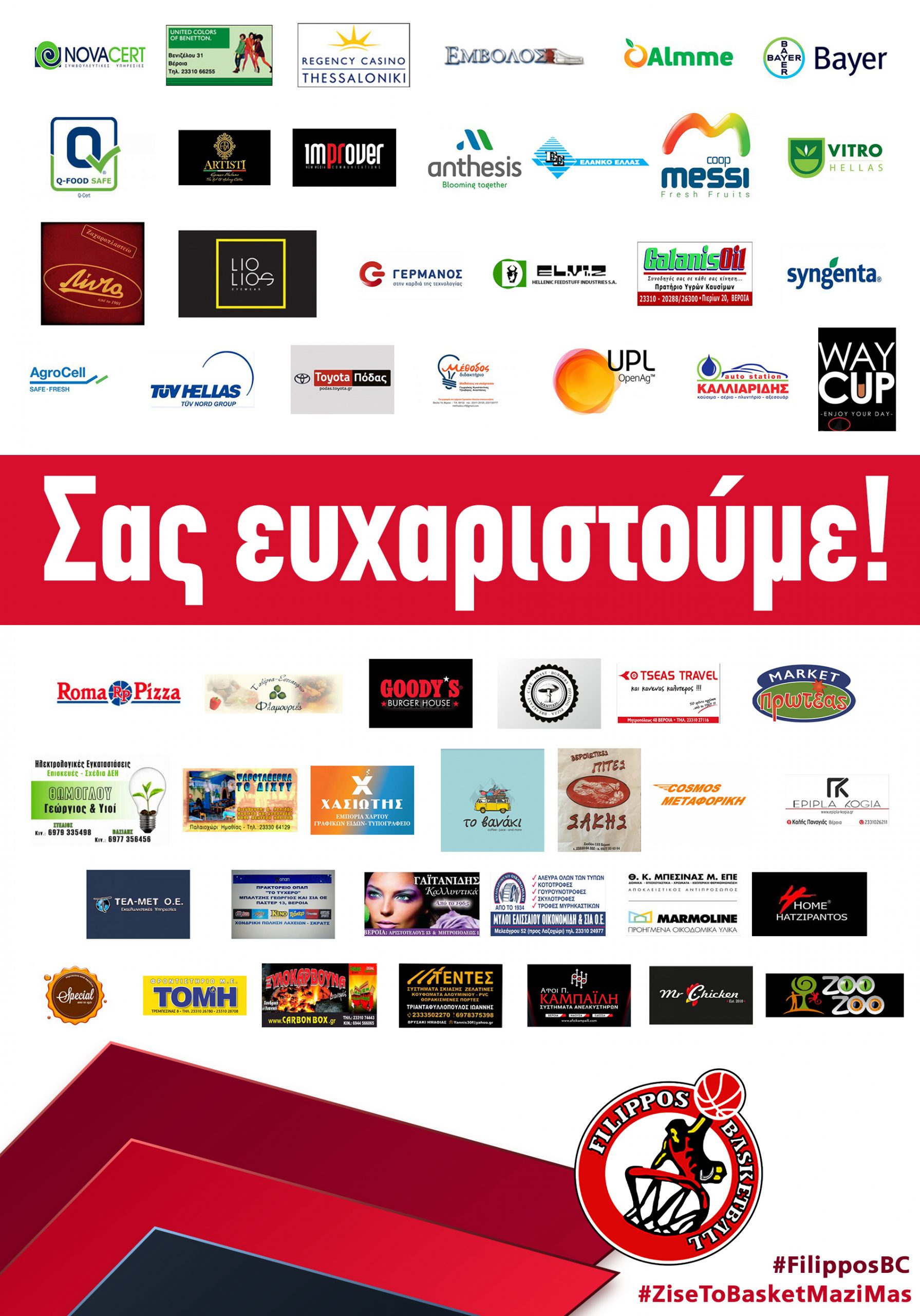 Ευχαριστούμε θερμά τους πολλούς και σπουδαίους χορηγούς που στέκονται αρωγοί στα όνειρά μας και πιστεύουμε ότι αυτή η συνεργασία θα συνεχιστεί και στο μέλλον!